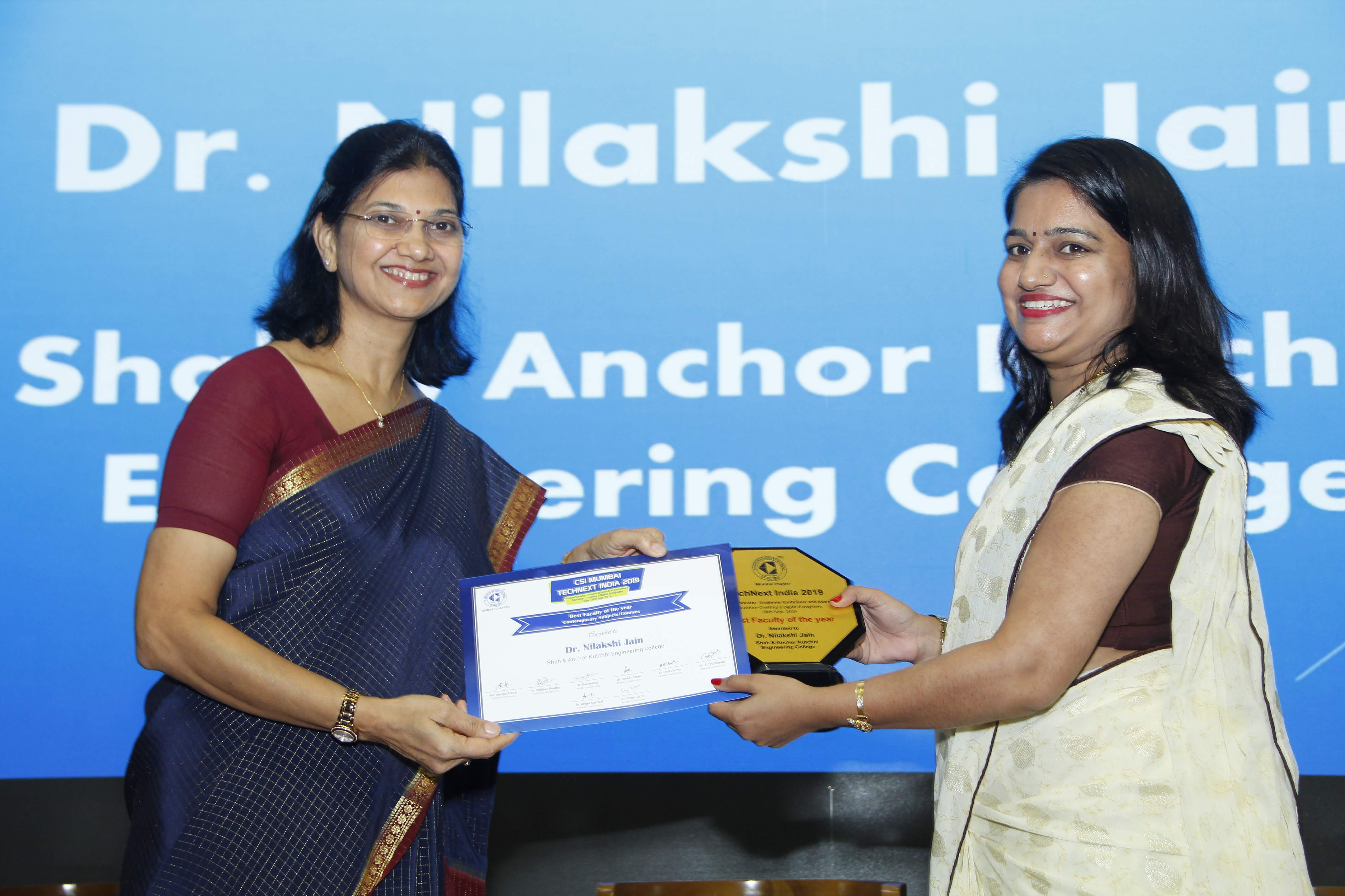 Awarded as “Best Faculty of the year” under sub category Best Faculty - Contemporary Subjects/Courses at the CSI TechNext India 2019 - Awards to Academia on 28th September 2019