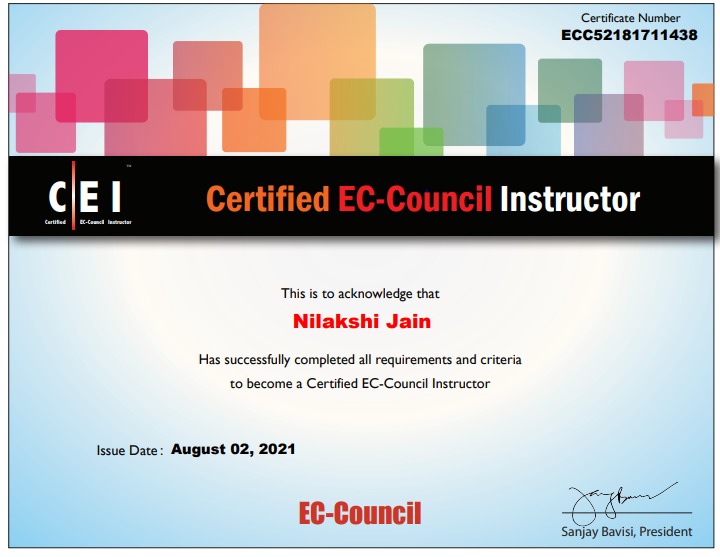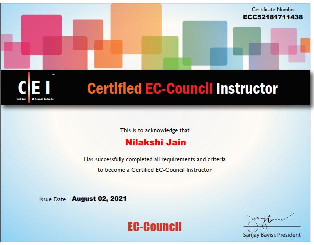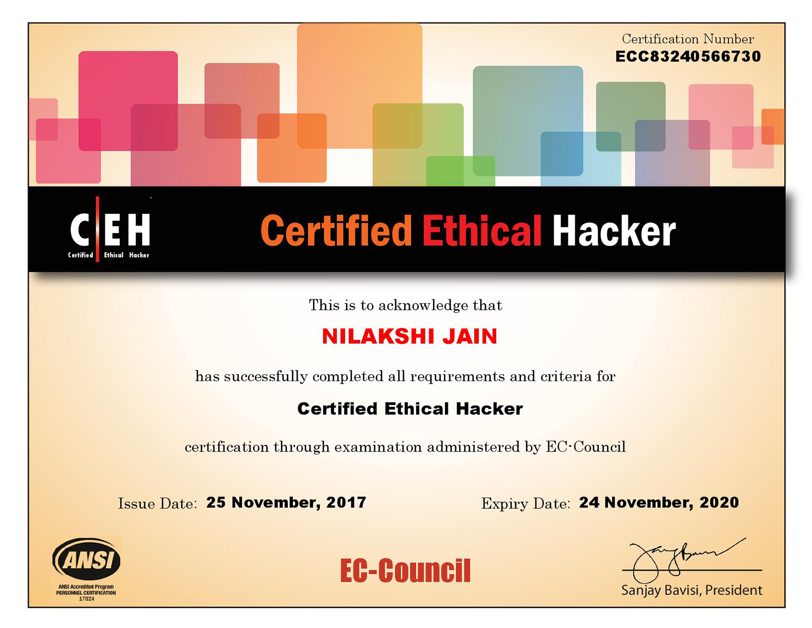 She is Certified Ethical Hacker (CEH EC Council, USA) and